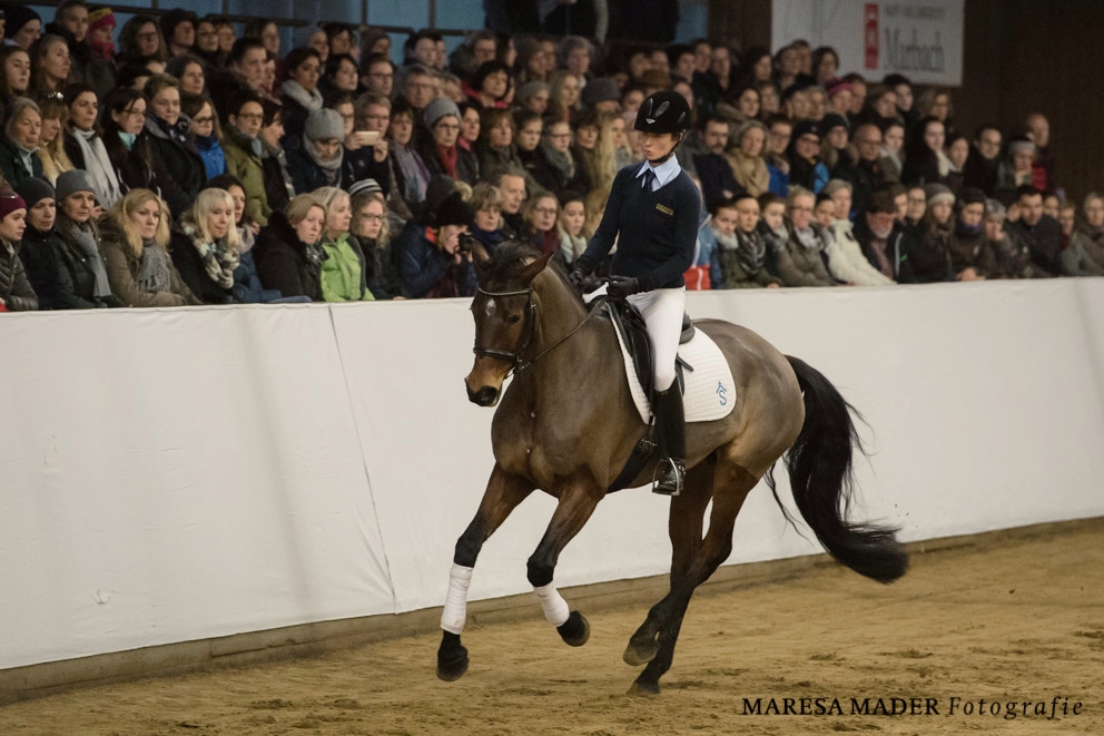 Seit mehr als zwei Jahren arbeitet das Haupt- und Landgestüt Marbach mit Anja Beran zusammen, die die Weil-Marbacher Vollblutaraberhengste WM SAFI ox und WM MALAKIL ox derzeit auf Gut Rosenhof ausbildet. Gestütsleiterin und Gastgeberin Astrid von Velsen-Zerweck begrüßte das Publikum in der voll besetzten Marbacher Reithalle mit einem Appell an die ethische Verantwortung im Reitsport und ermahnte die Reiterwelt, das Tierwohl stets im Auge zu behalten. Im Multimediavortrag von Anja Beran konnte das Publikum sein Auge schulen, um falsch verstandene Dressur von pferdegerechter Ausbildung unterscheiden zu lernen und einen Blick für die „richtigen“ Vorbilder zu entwickeln. Die Analyse wurde von der Fachtierärztin für Chiropraktik (A), Elisabeth Albescu, aus veterinärmedizinischer Sicht kommentiert. Im Praxisteil wurden anhand verschiedener Pferde Herausforderungen und individuelle Lösungswege angesprochen – entsprechend dem Naturell und den körperlichen Voraussetzungen des jeweiligen Pferdes.